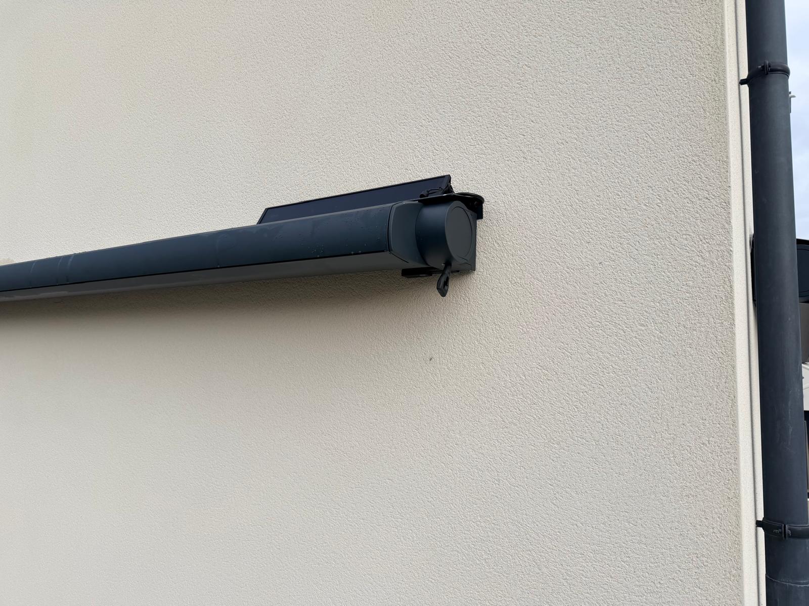 Le coffre protège la toile une fois repliée et assure une finition nette en façade.