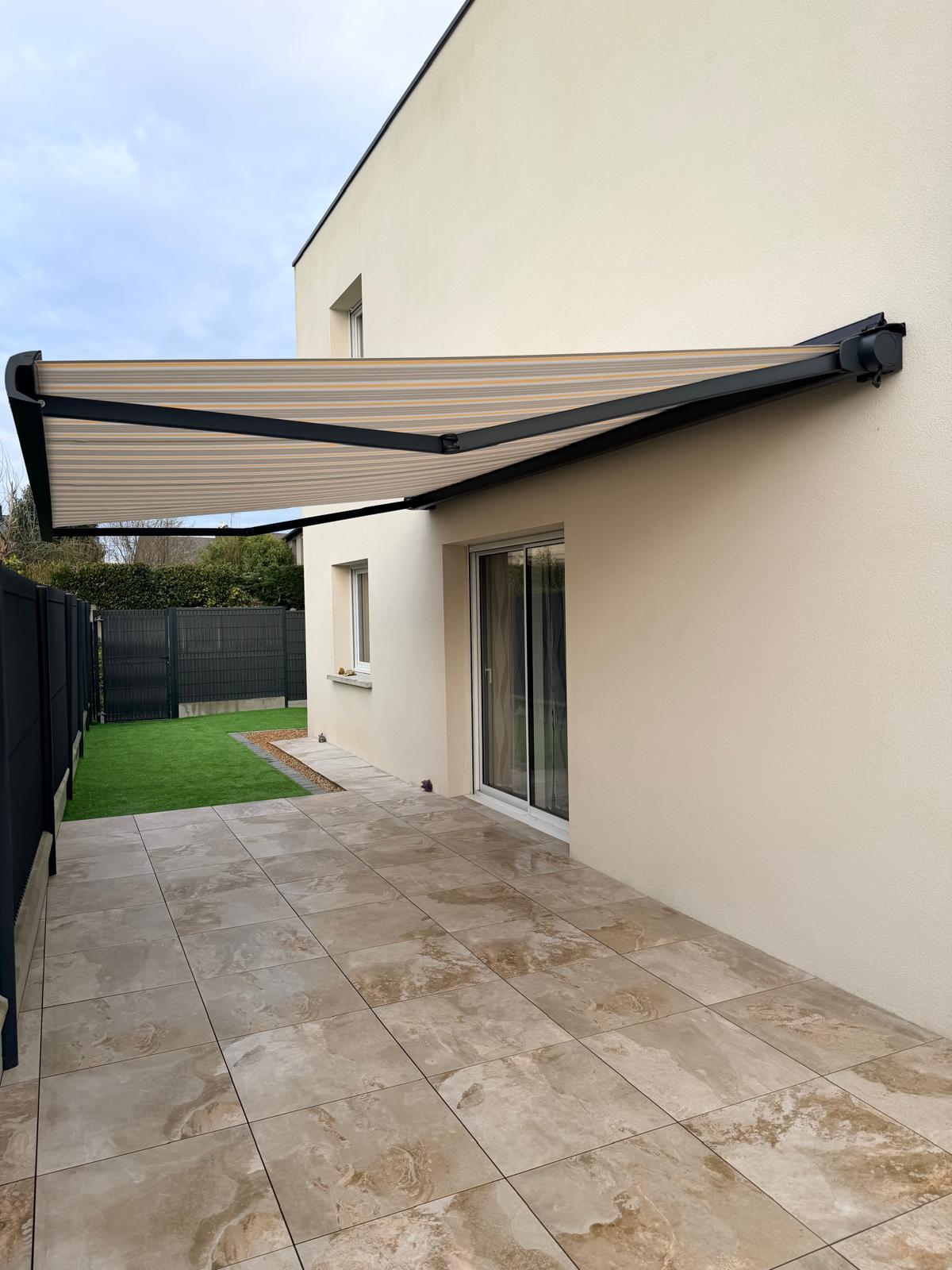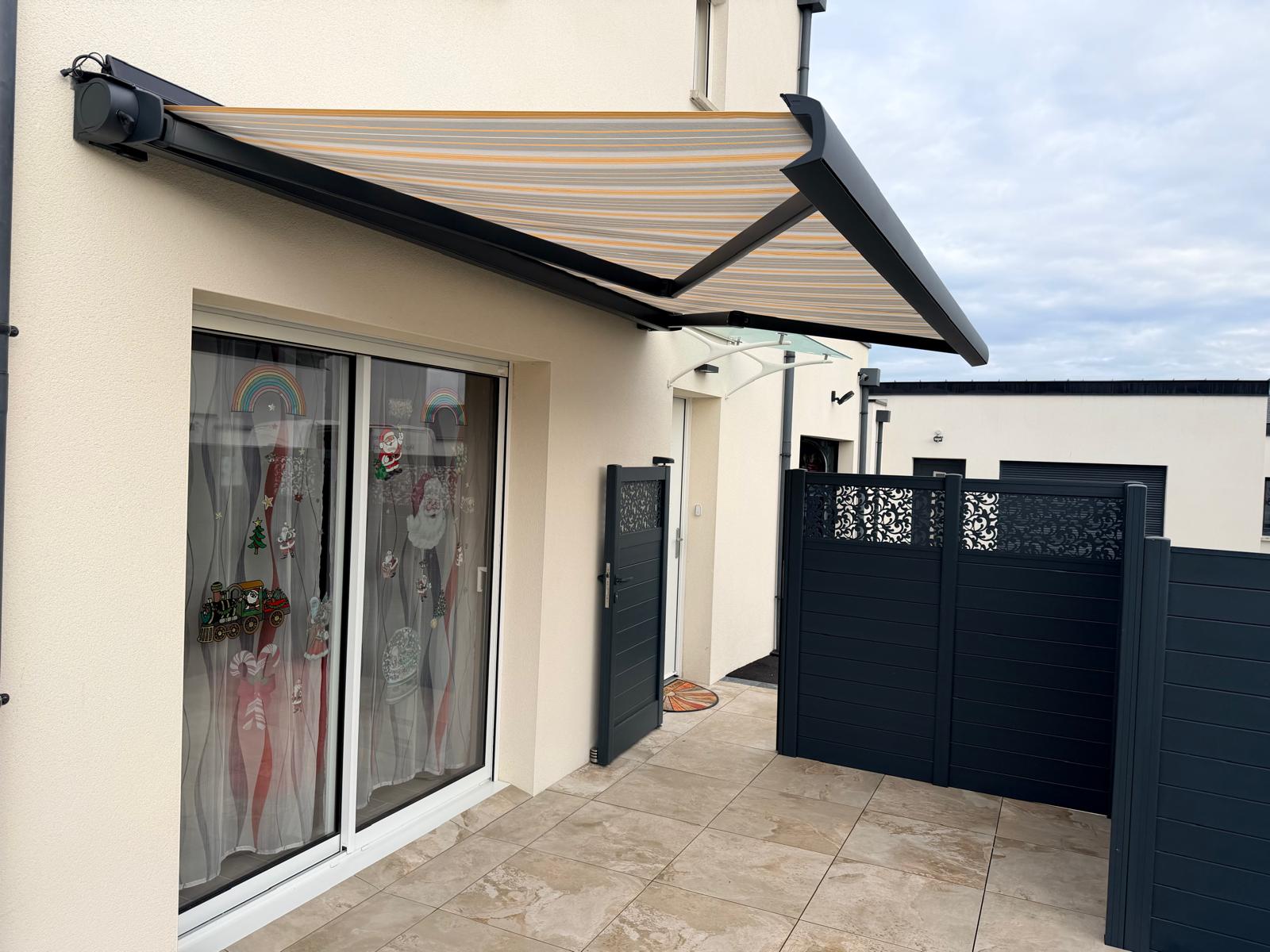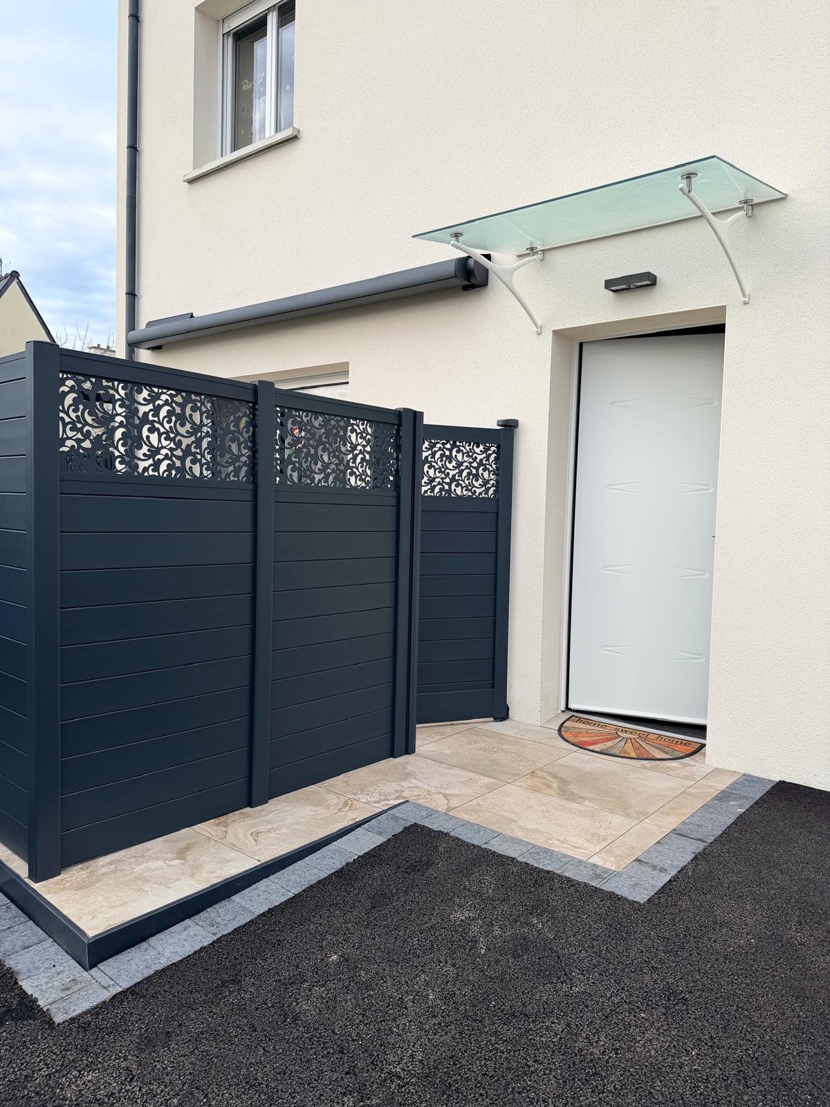 À Ploufragan, nous réalisons la pose de plusieurs clôtures aluminium et d’un store banne motorisé pour structurer et protéger l’espace terrasse.