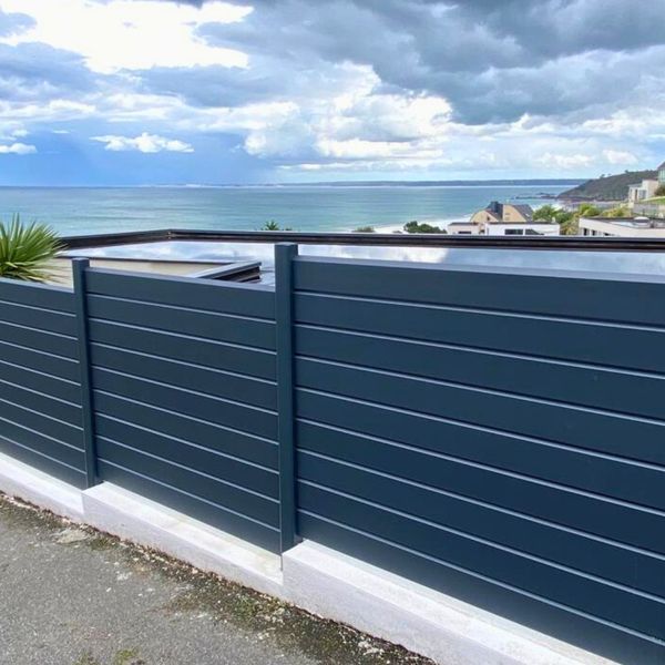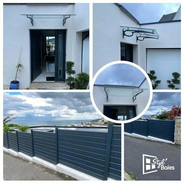 Nouvelle pose à Plérin : une vue à couper le souffle, une marquise en aluminium "Gaya" et des clôtures en aluminium modernes, alliant design et fonctionnalité.