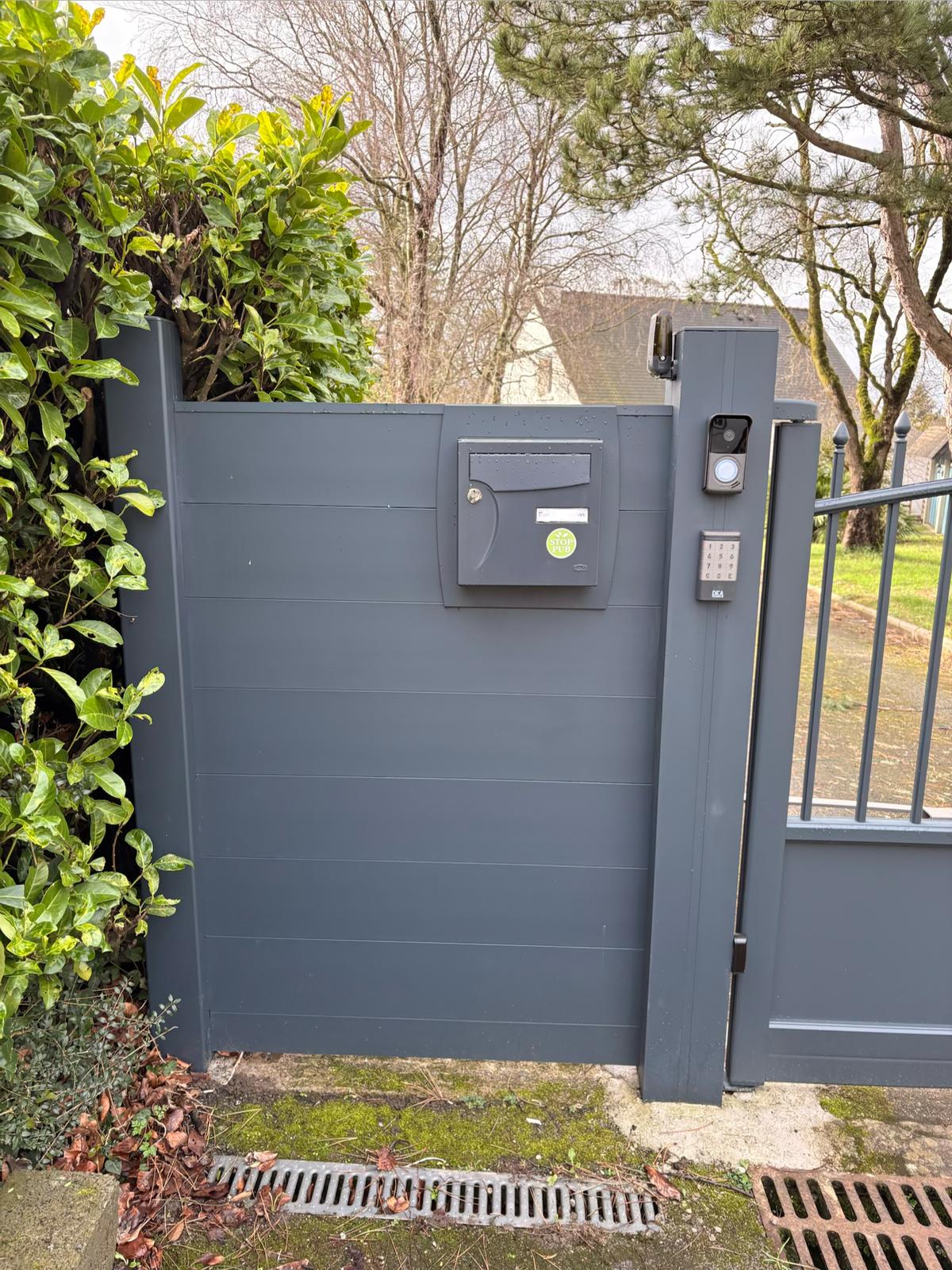 À Plaintel, pose d’un portail battant aluminium avec portillon et équipements de contrôle d’accès.